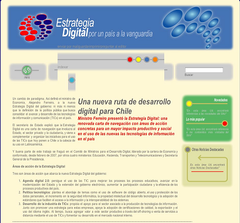 Luego que Juan Carlos Camus hiciera público el proceso de rediseño del sitio de la Agenda Digital Chilena (de mano de una fuente muy confiable, el mismísimo Alejandro Barros, encargado de la misma y Secretario Ejecutivo del Comité de Ministros para el Desarrollo Digital), la reacciones no se hicieron esperar. El diseño del sitio, pobre y lleno de fallas (tanto en navegadores Microsoft como en aquellos compatibles con Mozilla), gatilló las reacciones de algunos blogs chilenos bastante influyentes, como el de Jorge Barahona, FayerWayer, y nuestro sitio amigo, Huasonic, que de la mano del editor Guido_CC criticaba duramente el sitio.